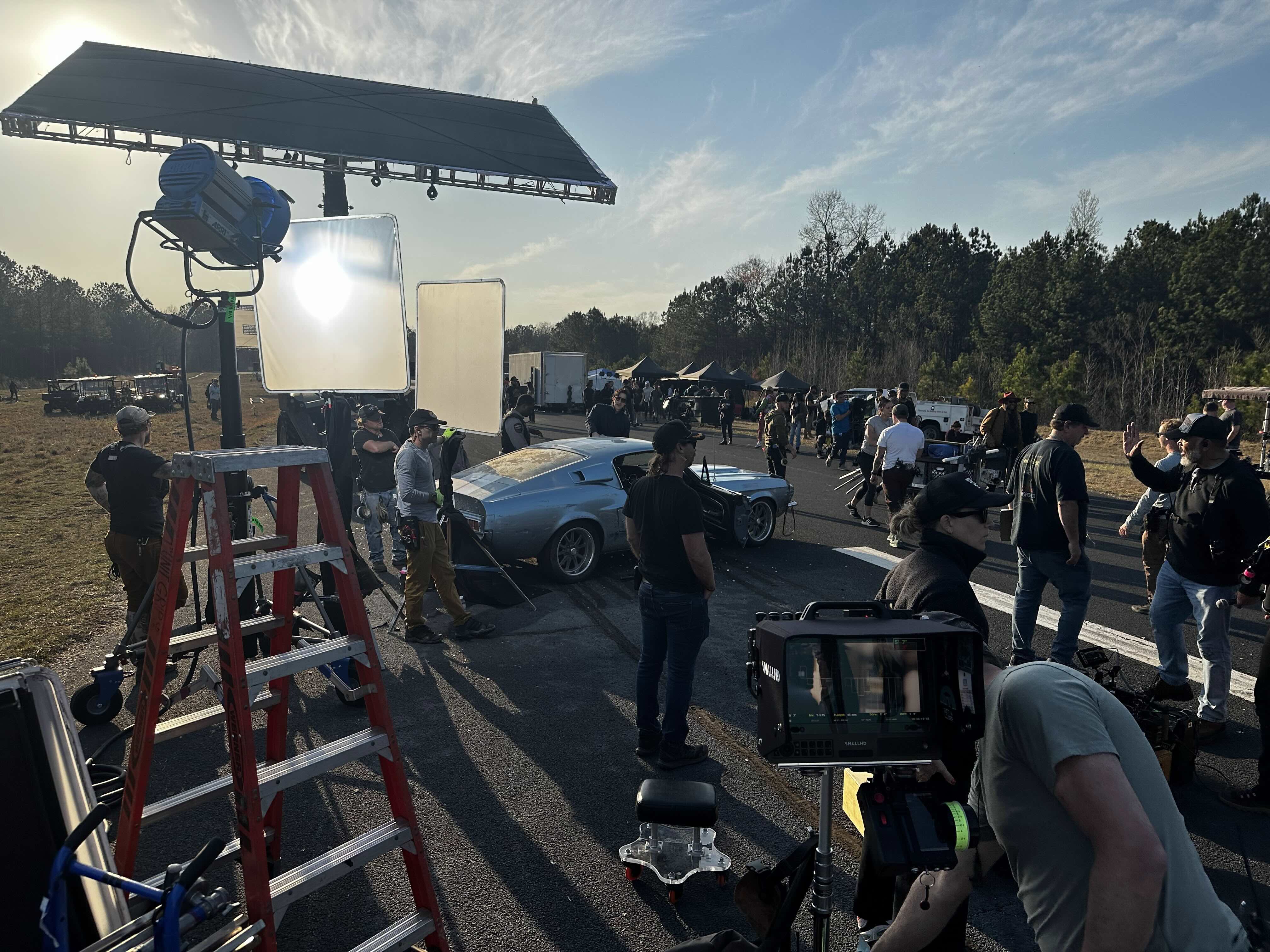 We used Image Shakers to create subtle vibration levels for driving shots. I had all the operators on wheels with set frequencies—gentle when cruising, more intense during heavy action. Sometimes I mounted the camera on a crane for movement, or zipped lights on a rail system to simulate a more “sun” like spectral light.
