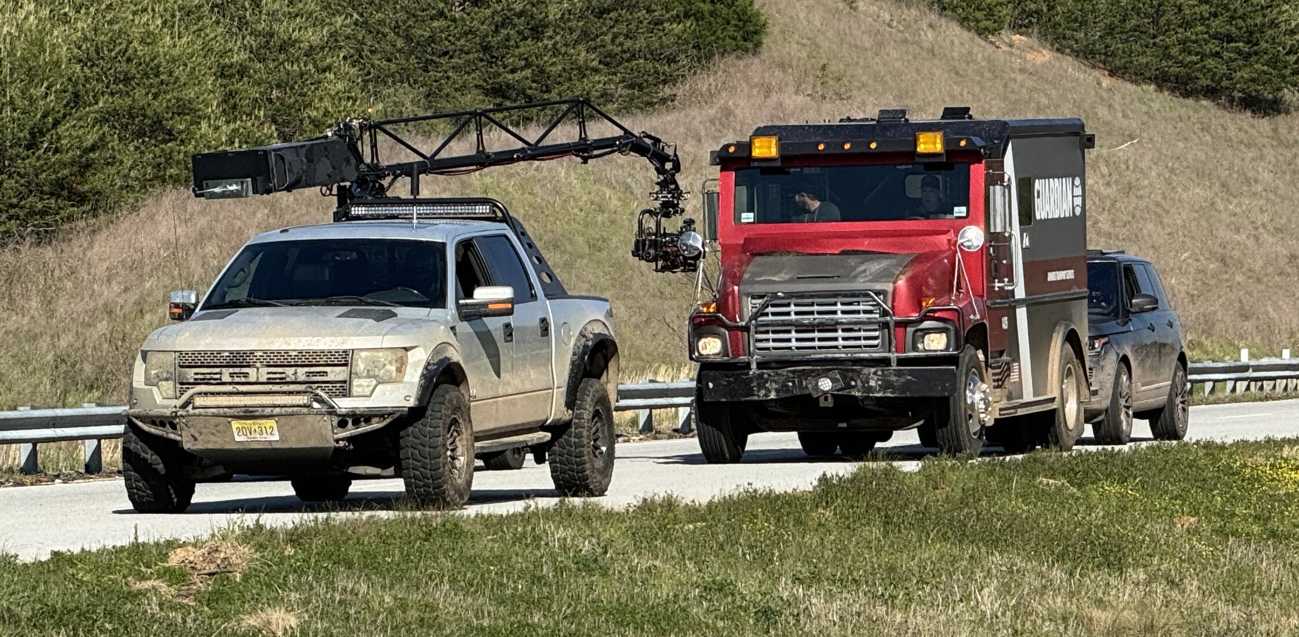 The second-unit team shoots the armored truck on location for The Pickup.